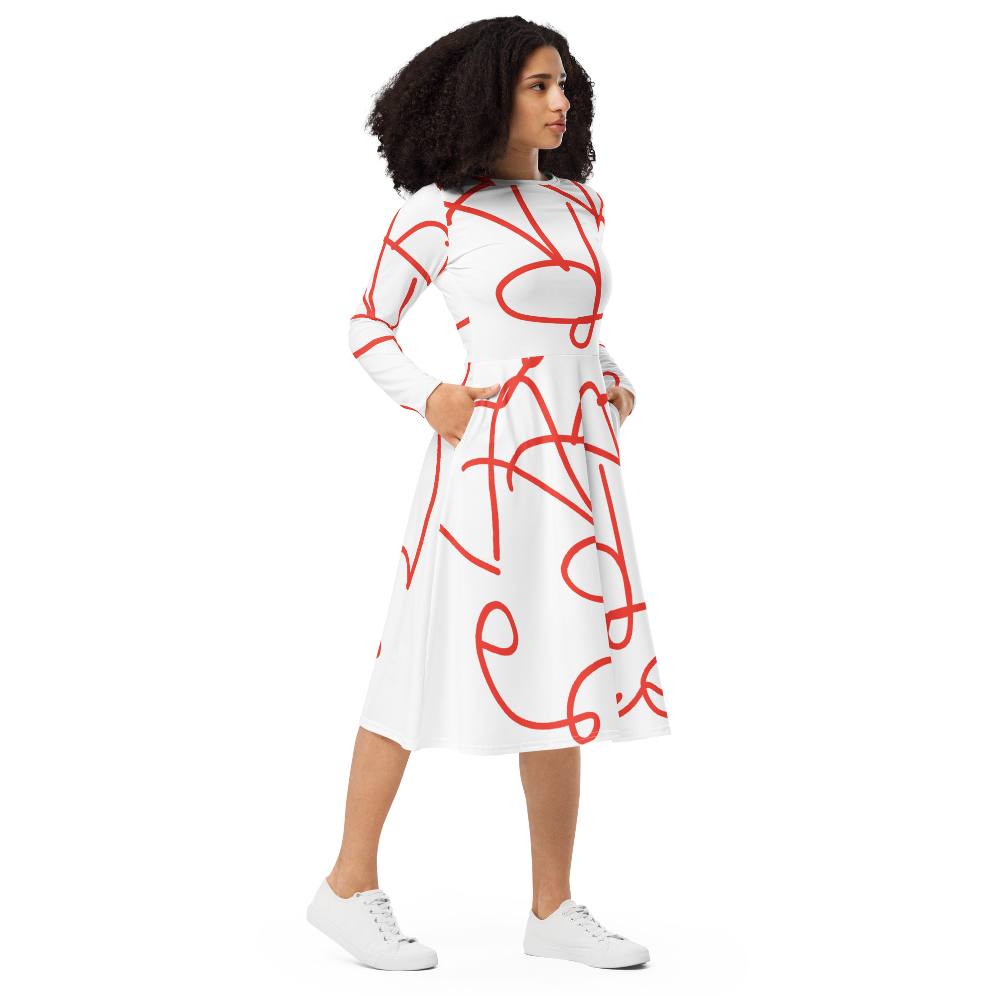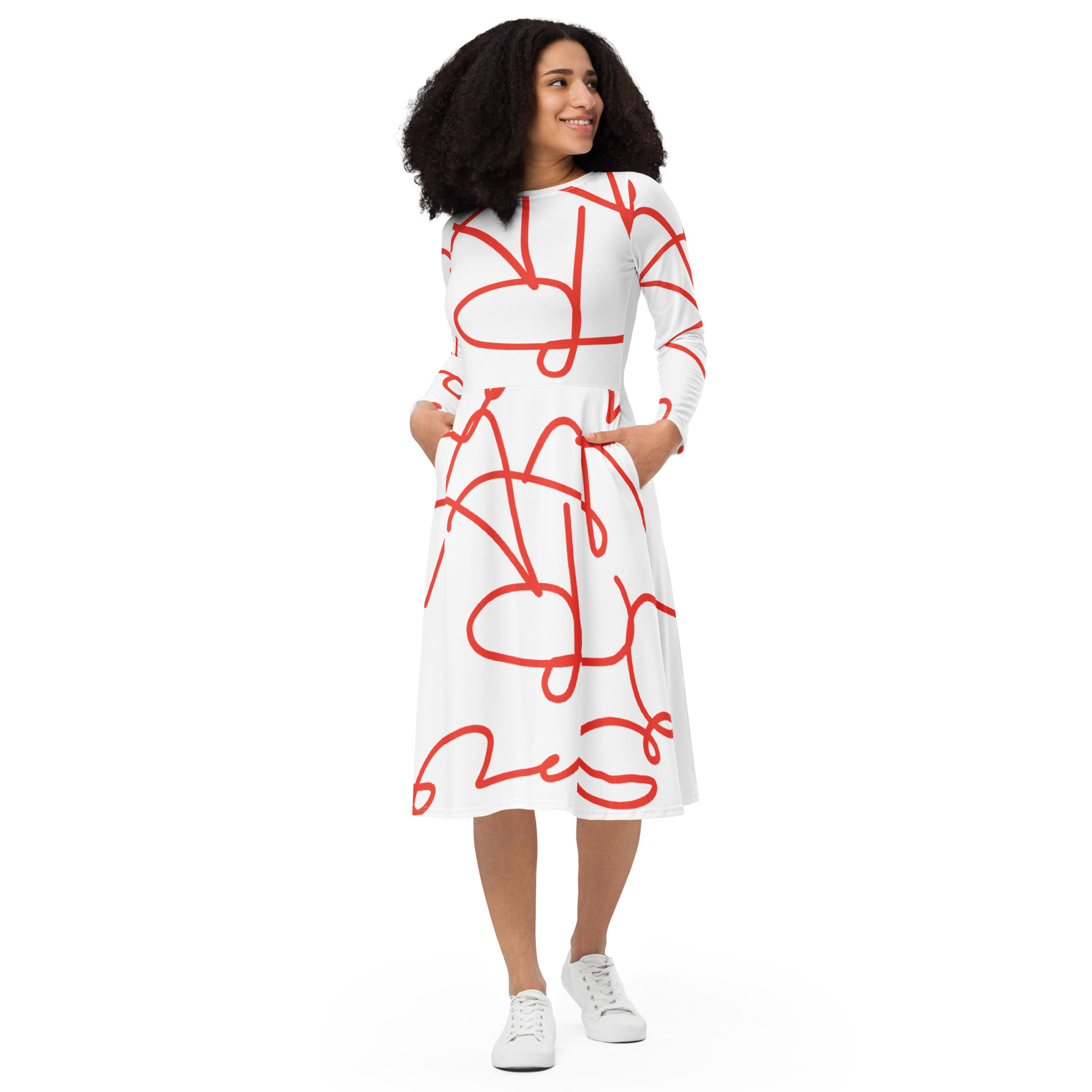 Meet your new favorite dress! Its soft fabric and flattering cut will ensure you feel comfortable and feminine all day long. Plus, the fitted waist and flared bottom part of the dress will accentuate the wearer’s naturally beautiful silhouette. The best part about the dress? It. Has. Pockets.