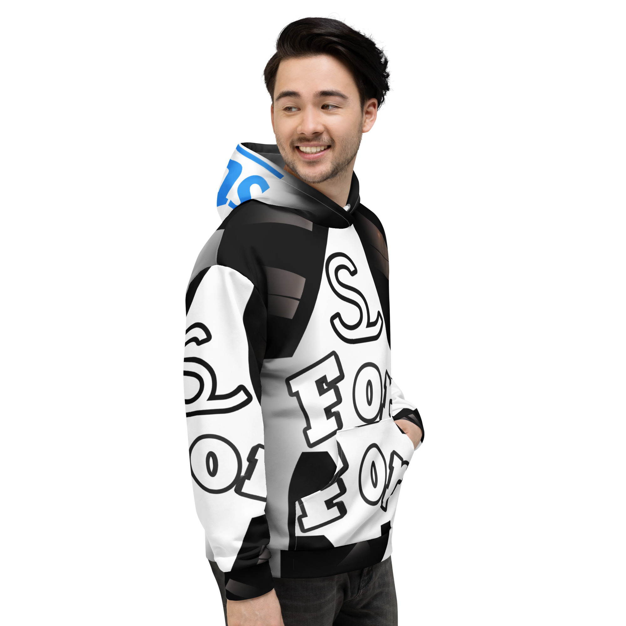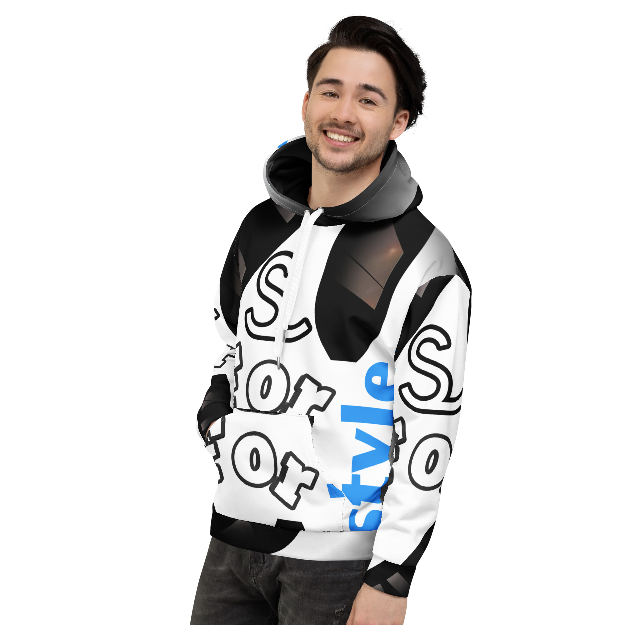• Double-lined hood with design on both sides